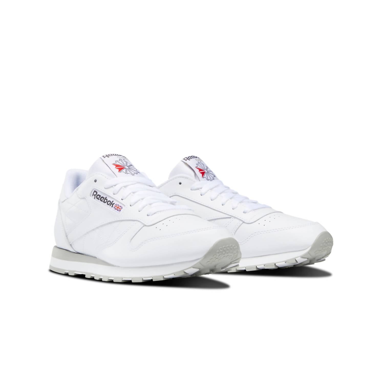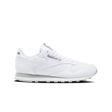 Step up your shoe game with the Men's Classic Sneaker by Reebok, a stylish nod to '80s running design. This low-cut profile sneaker features a soft leather upper in a crisp white hue, offering a classic yet edgy look. Enjoy exceptional comfort with its lightweight EVA midsole cushioning and a moulded sockliner. Ideal for men seeking a blend of retro-inspired style and modern comfort, this pair is a must-have addition to any wardrobe.