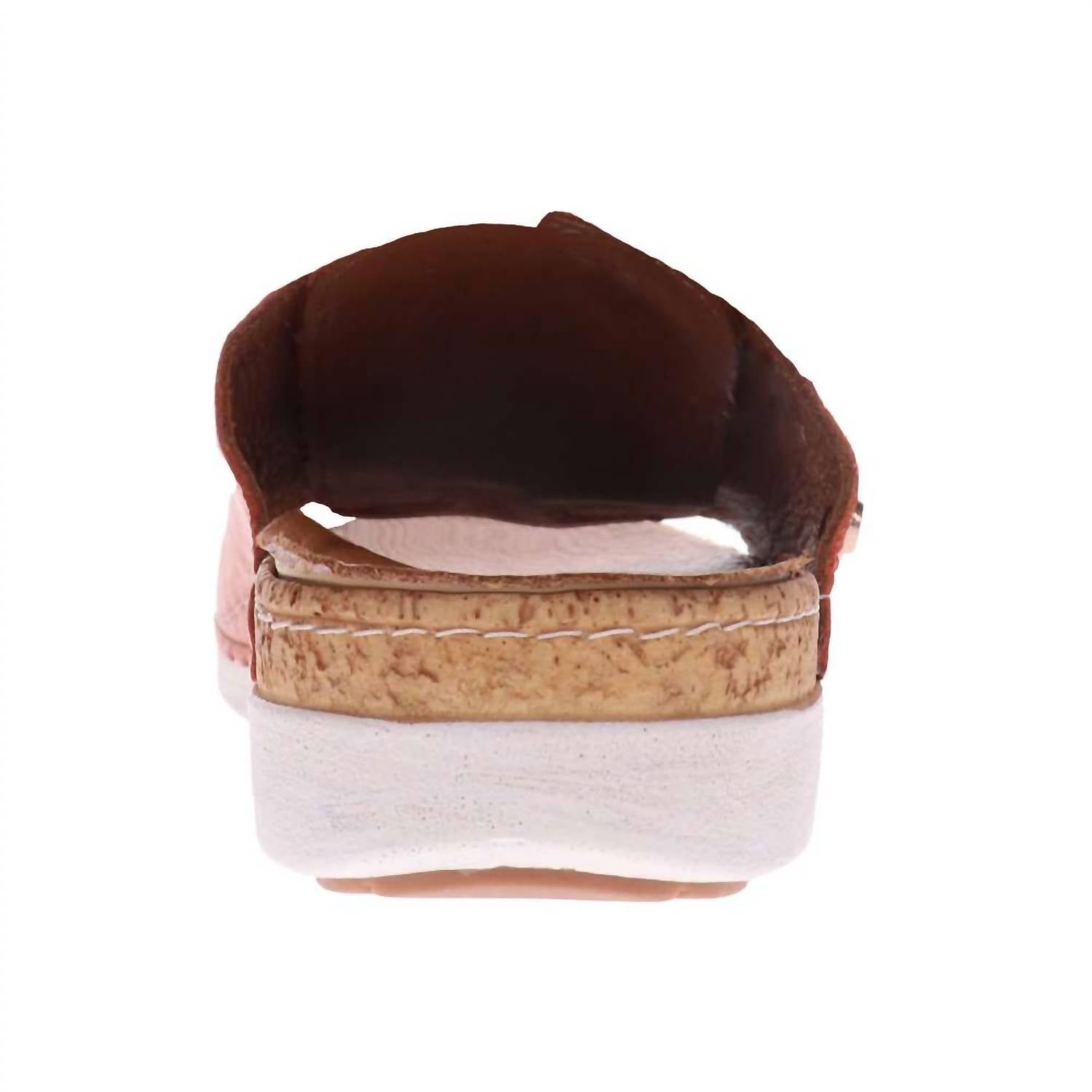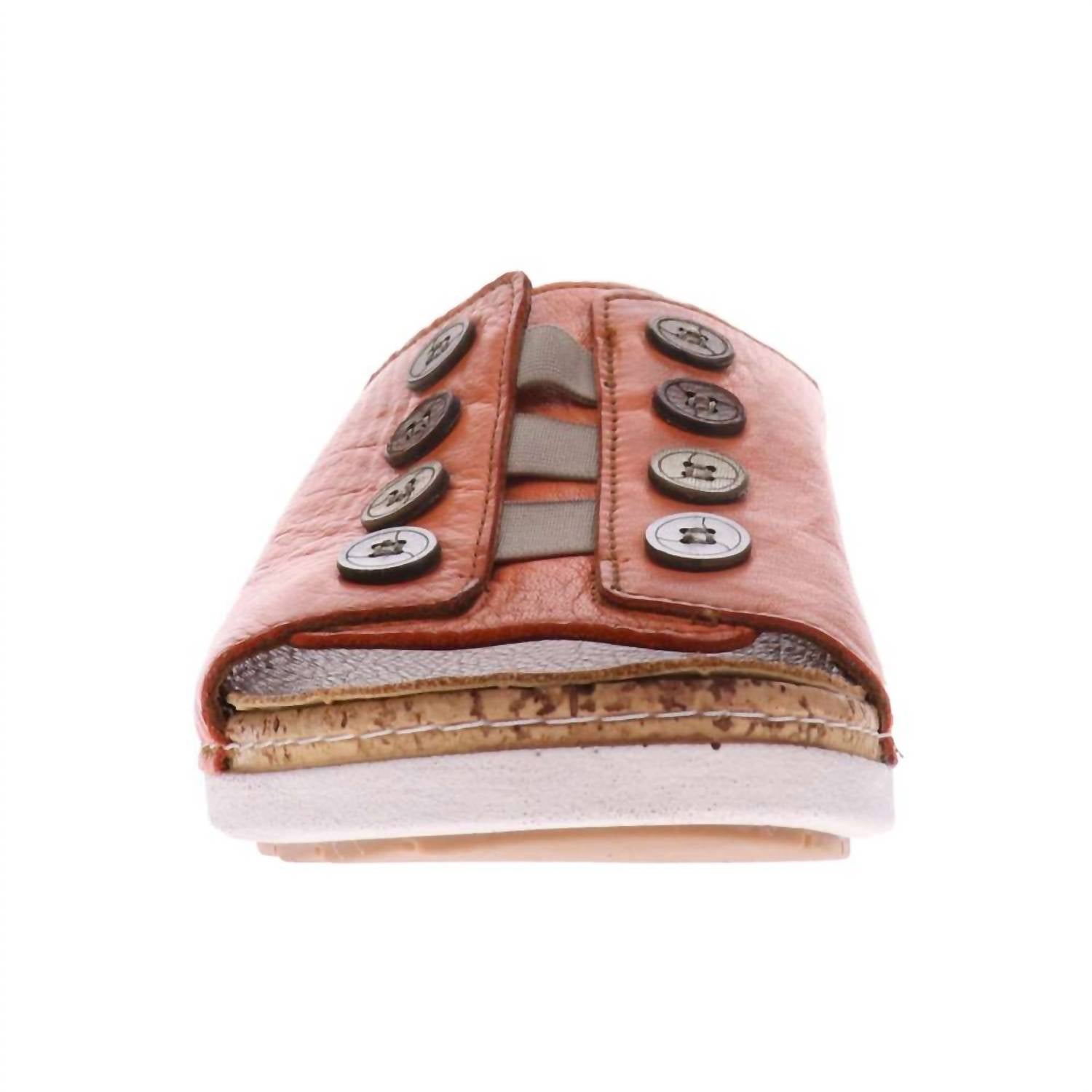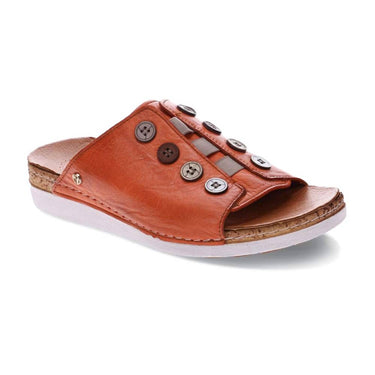 Experience the ultimate summer comfort with the Women's Antalya Slide Sandal by Revere. Crafted with a premium leather upper and lining, these sandals feature an elastic detail and a leather button trim. The cushioned leather-wrapped footbed with arch support offers comfort, and you can even replace it with custom orthotics or braces if needed. Perfect for vacations and warm days by the pool, these flat, wedge heel sandals effortlessly combine style and practicality for women seeking added coverage.