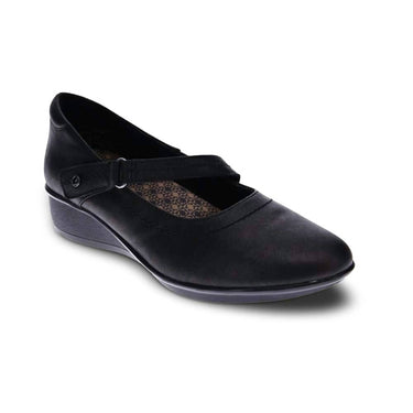 Elevate your footwear collection with the Revere Women's Bonn Mary Jane Shoes. Crafted from leather, these shoes boast an adjustable asymmetrical vamp strap for a modern twist on a classic design, and feature a 1.5-inch wedge heel for a subtle lift. Designed with comfort in mind, they include a removable footbed for custom orthotic compatibility, a forefoot cushion zone, and a slip-resistant outsole, ensuring every step is as comfortable as it is stylish. Care for your shoes by wiping clean with a damp cloth and air drying under indirect sunlight—no submersion or solvents needed.