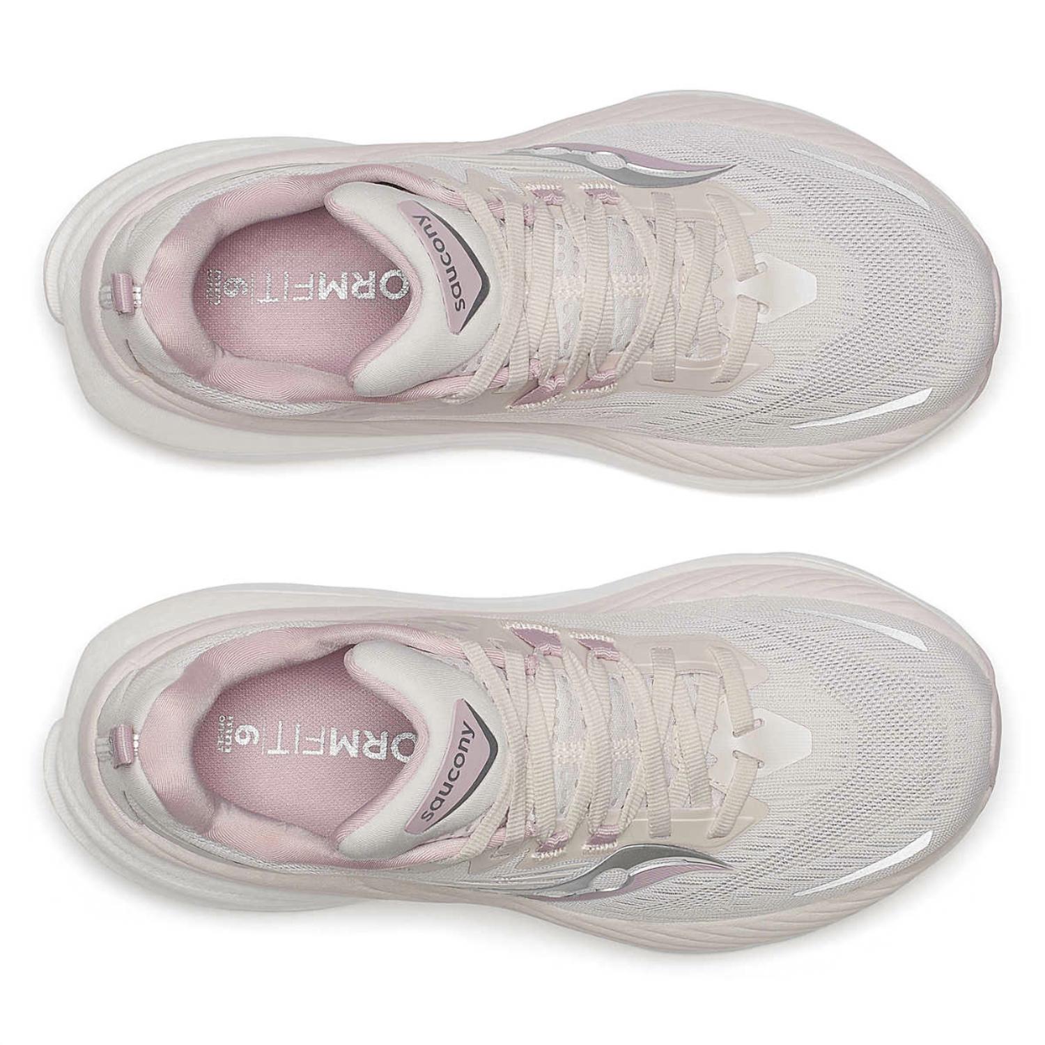 Introducing the Women's Hurricane 24 by SAUCONY, an athleisure favorite designed for fall fitness pursuits. These athletic shoes in a trendy Moon color feature a rubber composition for durability and comfort. The round toe shape and platform heel ensure a stylish fit ideal for workouts or outdoor runs. Crafted with precision, this pair seamlessly blends performance with style, making it perfect for your Thanksgiving season activities.