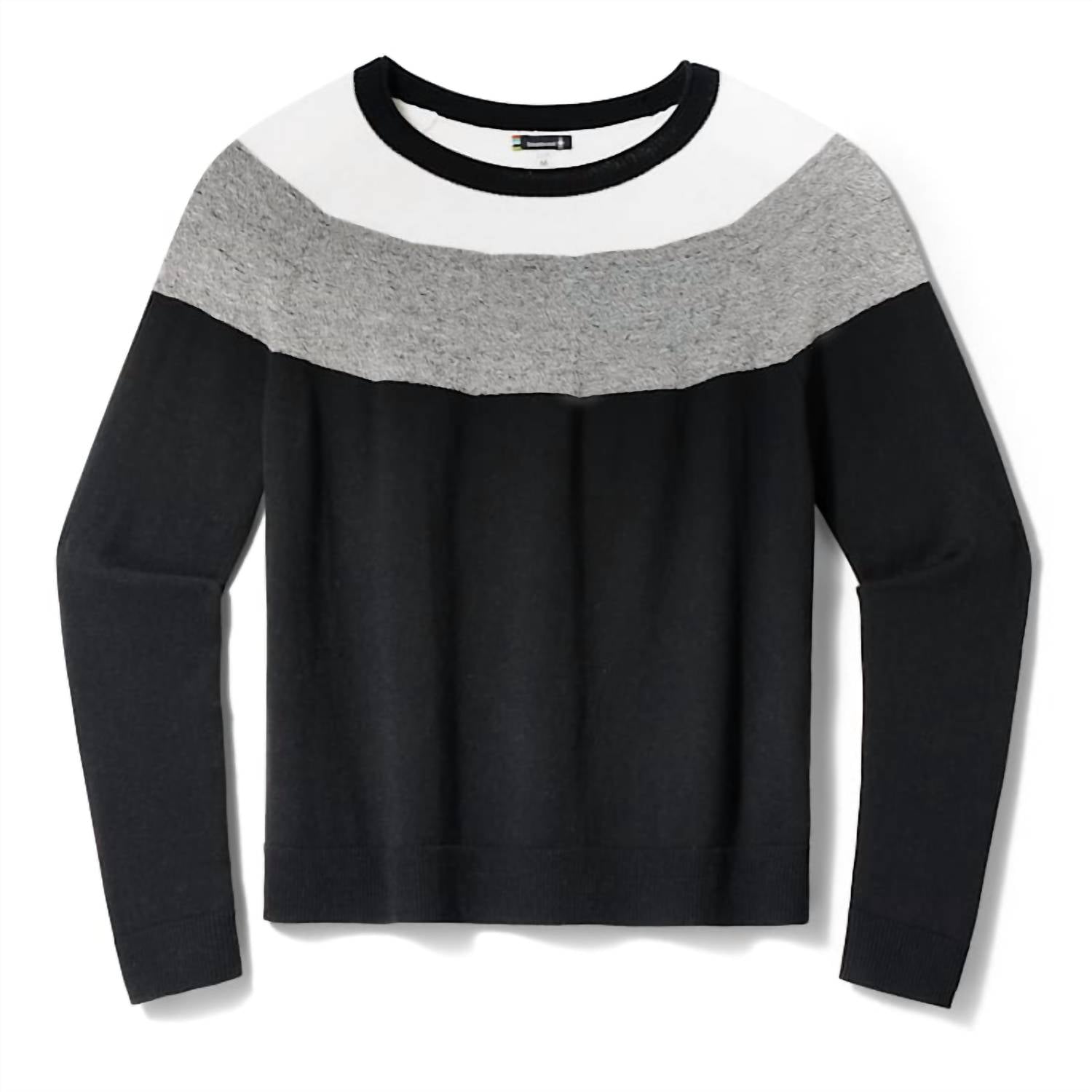 Presenting the Colorblock Crew Sweater by Smartwool, a sustainable choice for your wardrobe. This lightweight knit sweater is crafted with recycled polyester for an eco-friendly touch and features long raglan sleeves and a comfortable crewneck. Designed with a regular fit, it provides room to move without the bulk and is complete with a ribbed hem and cuffs. Closure: Pull on. Care: Machine wash. 55% Polyester, 30% Merino Wool, 15% Nylon.