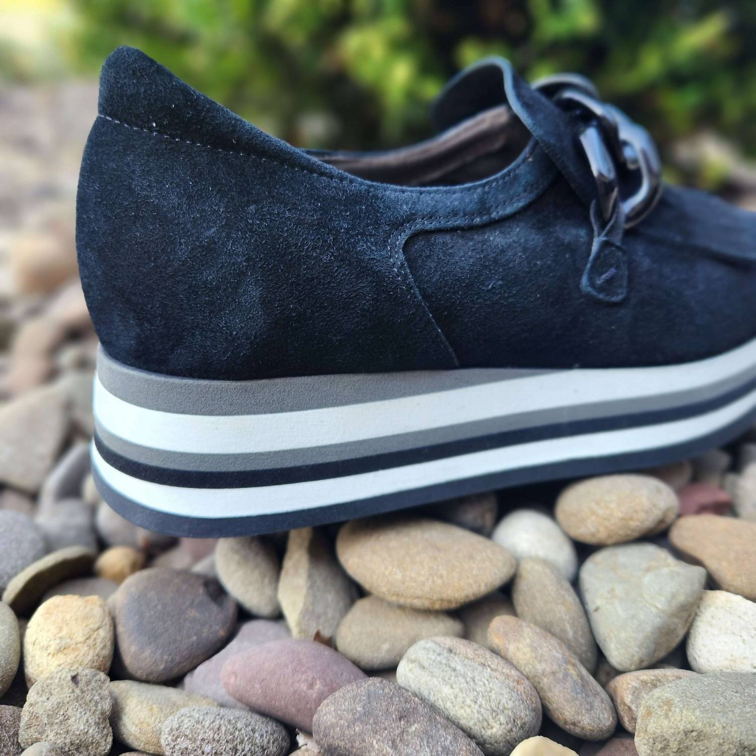 Step into the summer trend of athleisure with the Women's Cadie Platform Sneakers by Softwaves in striking black. These versatile flatforms offer the perfect blend of style and comfort with a perforated loafer-style upper and removable insoles for customized arch support. The unique chain and fringe front accents add flair, making them ideal for travel. Constructed with a round toe and flat 1" platform heel, these sneakers offer both style and substantial comfort, fluently transitioning from casual to chic.