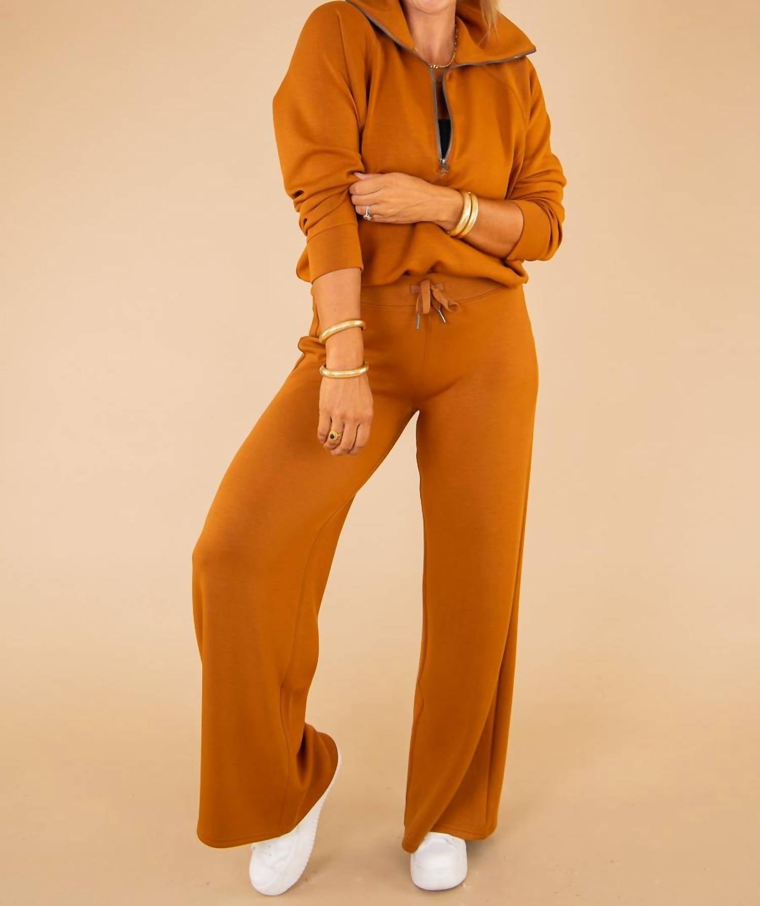 Light-as-air fabric. Fine knit structure offers maximum softness. Optimal air flow and circulation for all-day comfort. 4-way stretch for easy movement. Flat front, fit flexible waistband stays put. Drawcord to customize fit. Non-shaping. Mid-rise. Relaxed fit with leg-lengthening wide leg. Contoured back for the most flattering rear view. 47% Modal, 46% Polyester, 7% Elastane. Machine wash cold.