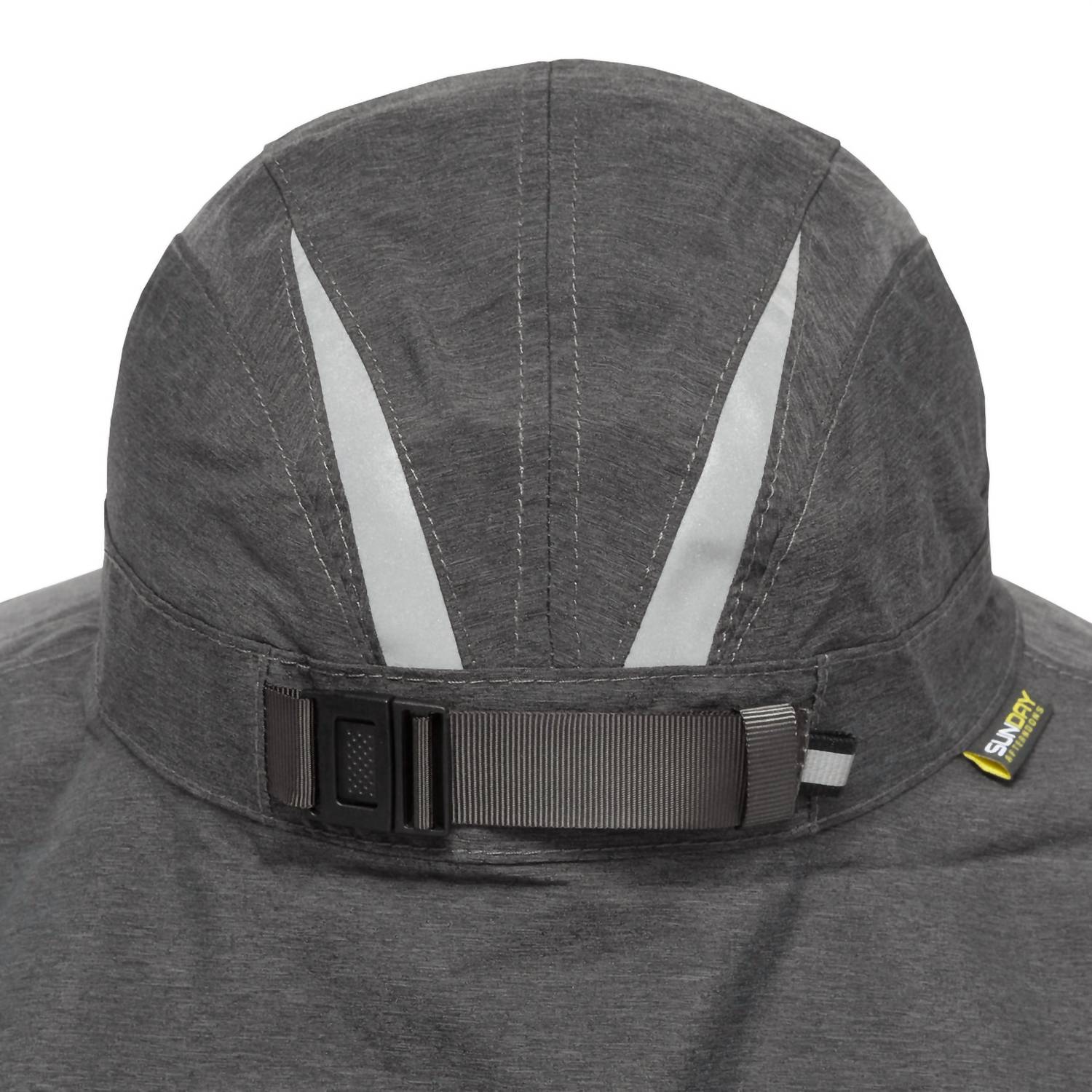 Meet the Men's Ultra Adventure Storm Hat by Sunday Afternoons, a peak performance rain hat in Shadow, designed for the adventurer. Crafted from 100% waterproof, breathable, and fully seam-taped fabric, this hat offers protection with a 10k waterproof membrane and UPF 50+ sun rating. The adjustable chinstrap ensures a secure fit, while the Reverse Split Brim allows for compact packing. Made from 100% recycled polyester, it weighs just 2.9 ounces/82.2 grams, and care instructions include hand wash cold and line dry.