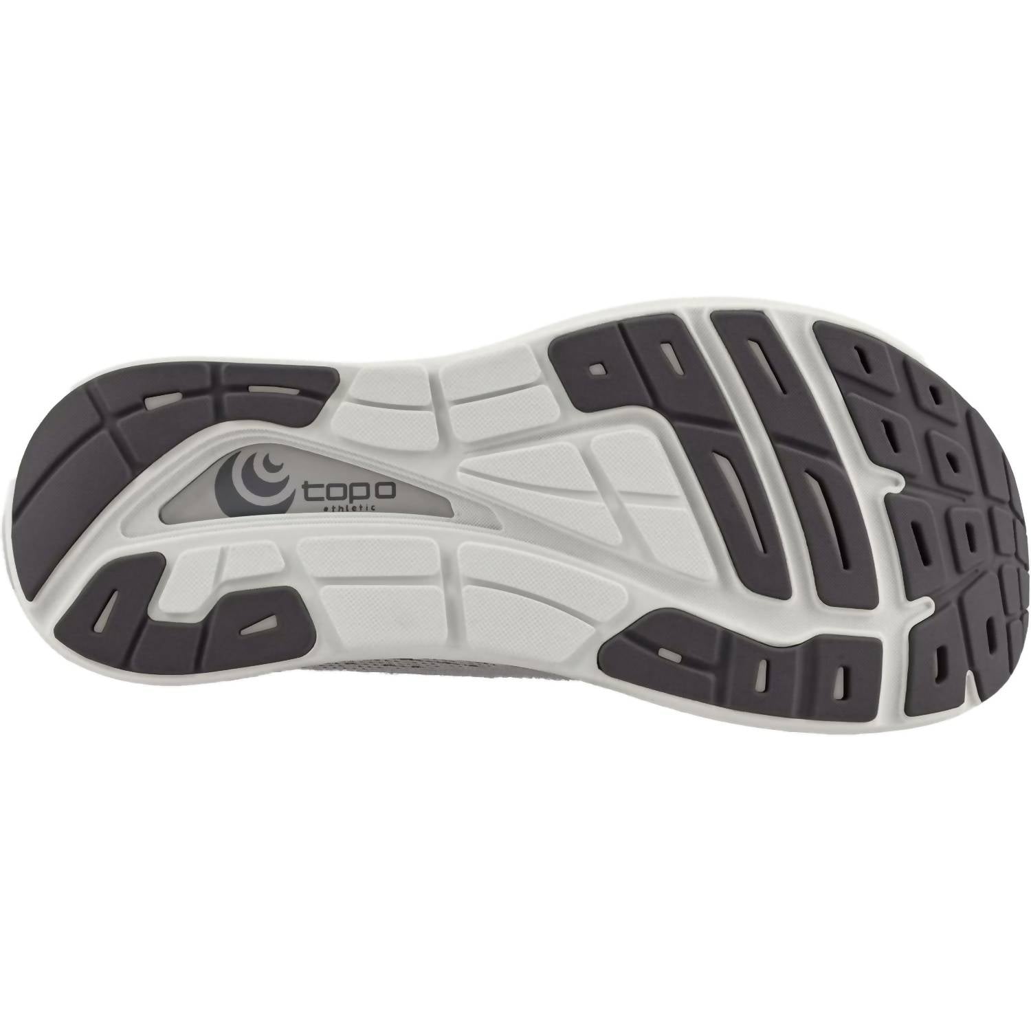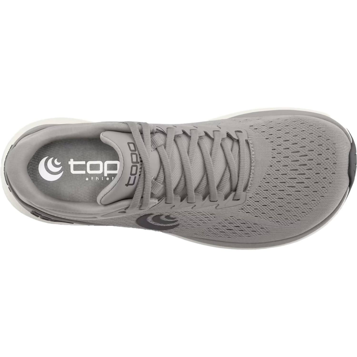 Experience unparalleled performance with the Topo Athletic Men's Phantom 3 Running Shoes, expertly crafted for the dedicated athlete. Engineered with a streamlined upper made from 30% recycled materials, each pair equals three 16 oz. plastic water bottles, ensuring an eco-friendly choice. The innovative two-piece midsole combines our new ZipFoam formula, providing a softer feel beneath your foot and a firmer, stable ride on the ground. Perfect for summer athleisure, these grey running shoes with a flat heel are recognized by the APMA for promoting optimal foot health. Ideal for fitness and workout occasions.