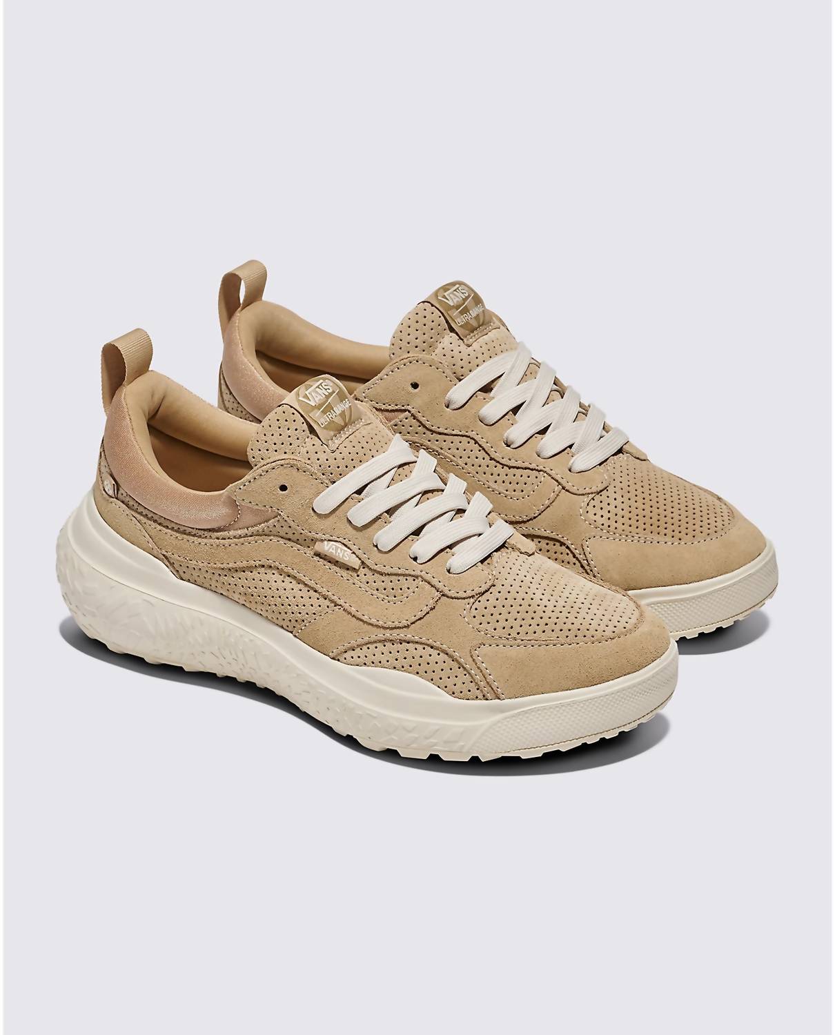 Meet the Unisex Mte UltraRange Neo VR3 Sneaker by Vans, a sustainable and versatile choice for your daily adventures. Crafted with suede uppers and 100% recycled PET textile, this sneaker embodies a commitment to responsible materials. The low wedge heel provides enhanced cushioning and support, perfect for all-day wear, while the regeneratively grown natural rubber outsole ensures durability and grip. Ideal for those who value fashion and sustainability, this cornstalk-colored sneaker complements your streetwear vibe effortlessly.