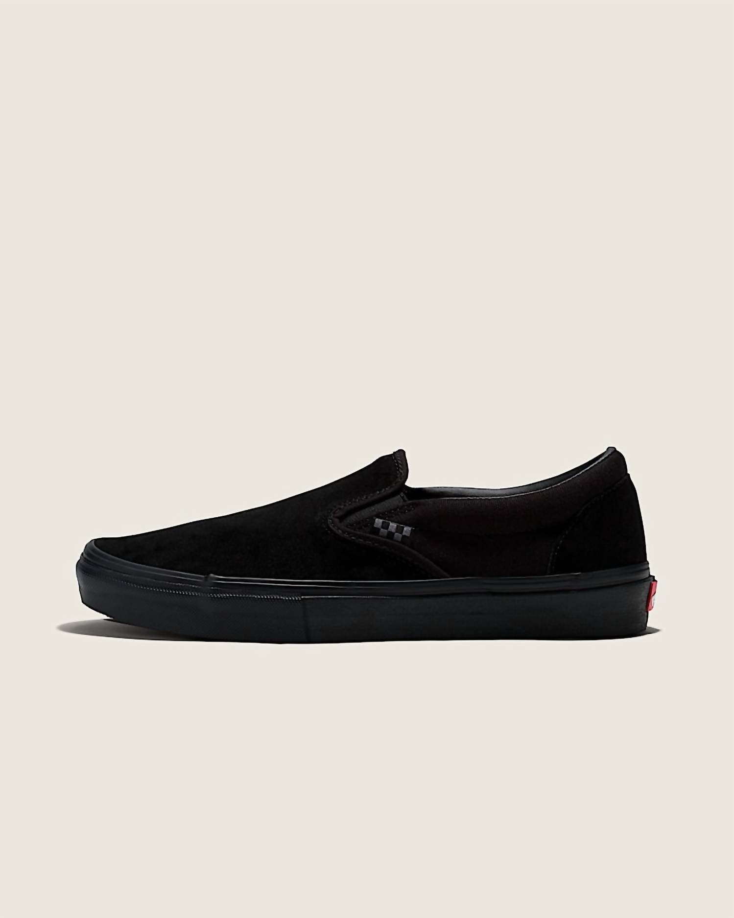 Experience the Vans Unisex Skate Slip-on Shoe, expertly crafted for the modern skateboarder. These sneakers are constructed with classic black suede and canvas uppers, enhanced with DURACAP™ reinforced materials and a deeper knurl texture on the toe bumpers for increased durability. The shoe features a molded heel counter and internal tongue straps for a secure fit, complemented by the legendary SickStick™ gum rubber compound for superior grip. Equipped with PopCush™ footbeds, these shoes offer exceptional cushioning and impact protection, while maintaining the iconic styling of the original Classic Slip-On. Ideal for athleisure and game day in the summer season, they feature a flat heel and round toe shape, perfectly suited for both men and women.