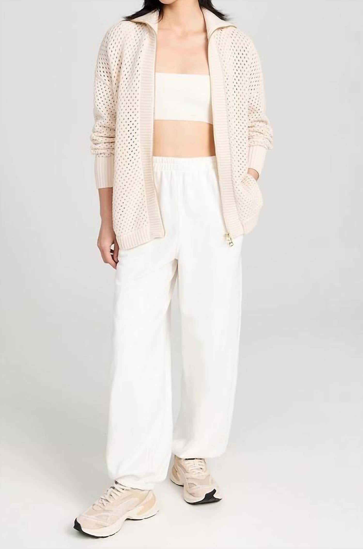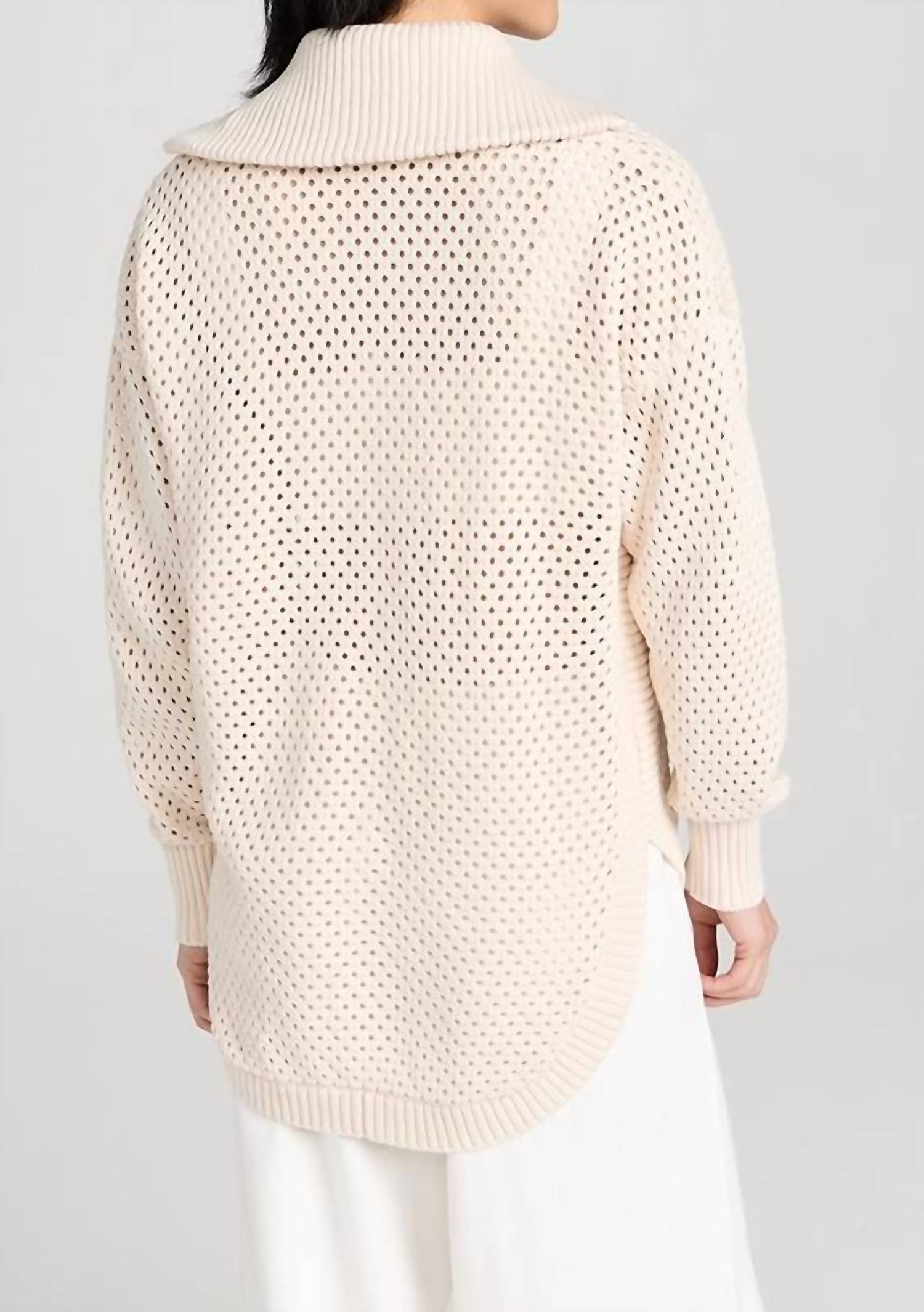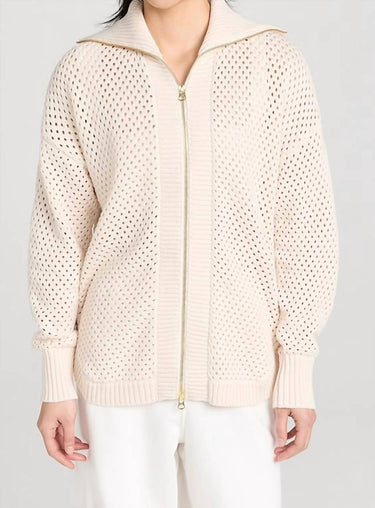 The Finn Longline Knit Jacket in Whitecap Grey by VARLEY combines style and functionality, making it a must-have for any wardrobe. Its long sleeves and roomy relaxed fit with an airy open knit bring comfort, while a fold-over collared neckline adds a touch of sophistication. Crafted entirely from cotton, this jacket features ribbed trim, a curved hem, and a two-way zip closure for versatility. Imported and easy to care for, it's perfect for those who prefer machine wash convenience and need practical everyday wear.