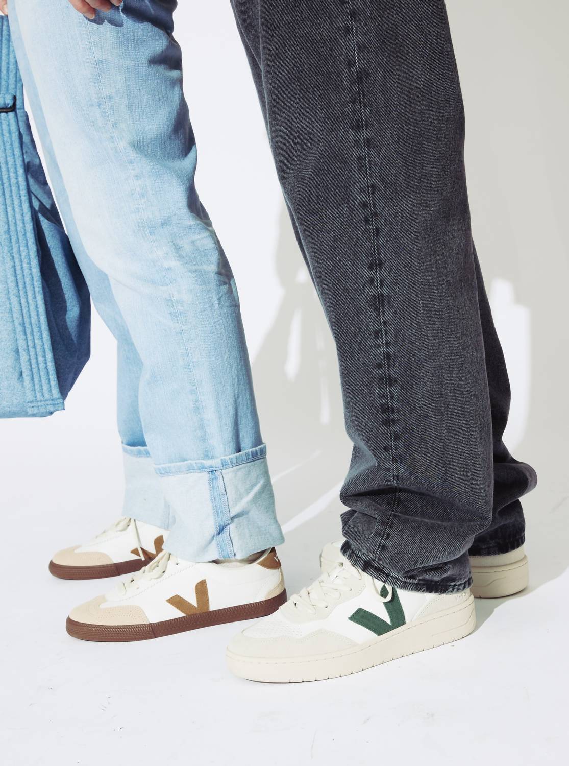 Elevate your streetwear style with the Men's V-90 Leather Sneakers by VEJA, featuring a premium White Cyprus finish. This sneaker showcases panels and a logo in suede, complemented by an O.T. leather upper sourced from 100% organic farms in Uruguay. Designed with a comfortable round toe and a low heel height of 1 1/4"-2", it's perfect for travel occasions and the spring season. Made in Brazil with laces crafted from 100% organic cotton, these sneakers prioritize sustainability without compromising on style.