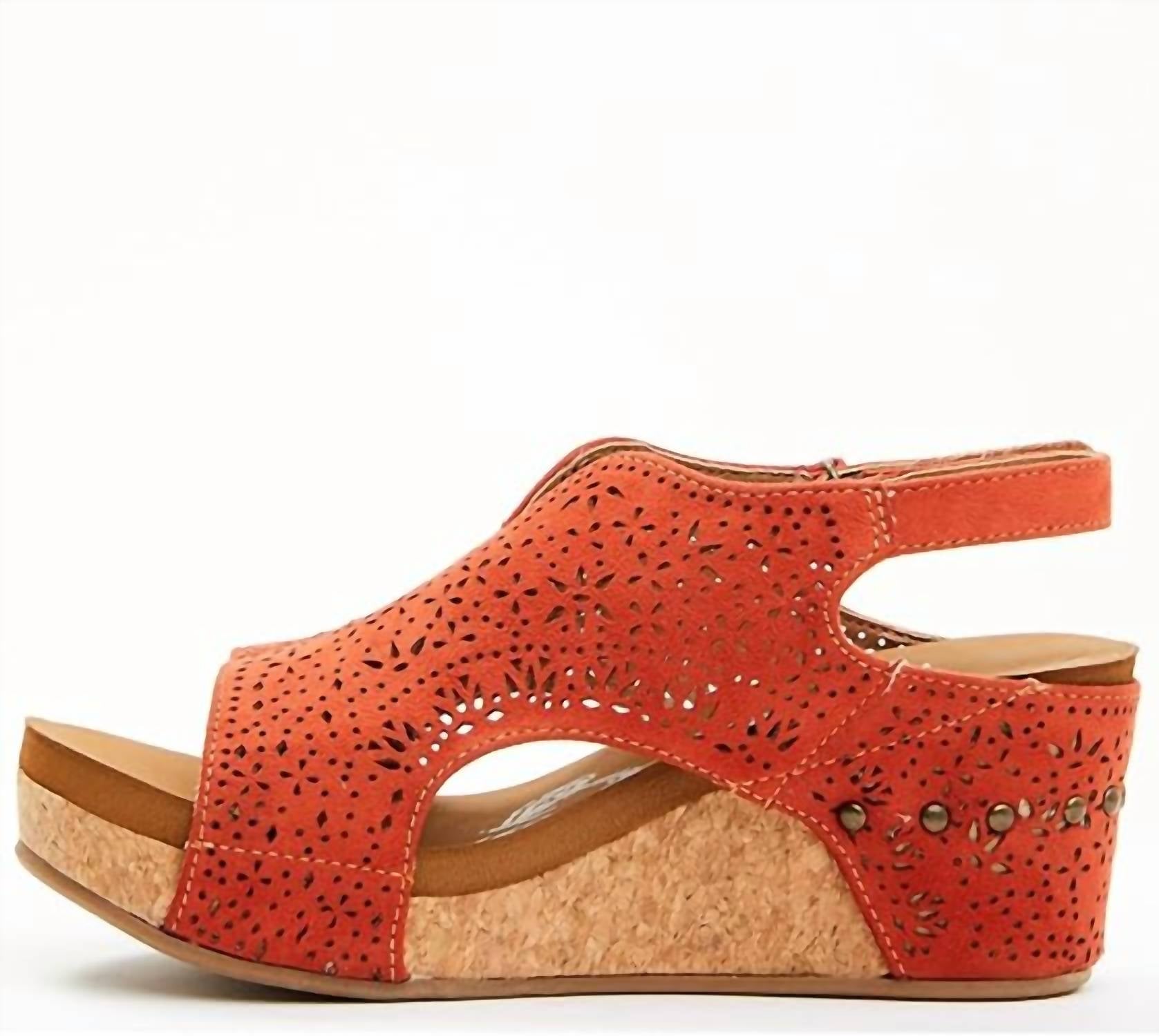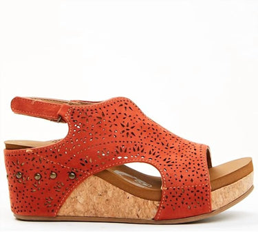 Step into style with the Women's Free Fly Wedge Sandals by Very G, perfect for elevating your summer wardrobe. These rust-colored sandals feature rust suede straps and a cork wedge, ranging from 1.5" at the front to 3" at the back. The tribal cutout design adds a trendy touch, while the foam footbed ensures comfort for prolonged wear. Featuring vintage gold hardware and a convenient velcro closure, these sandals are an ideal choice for cocktail parties or pairing with your favorite fall outfits.