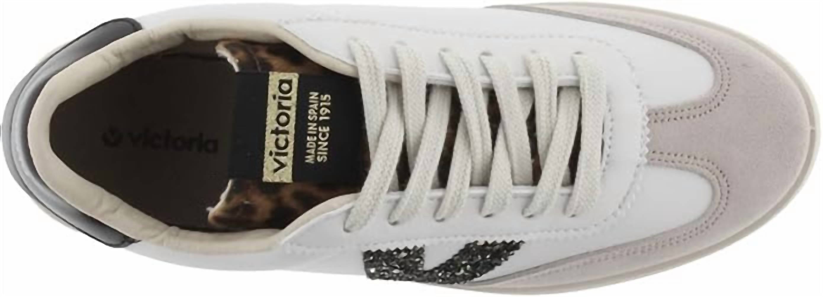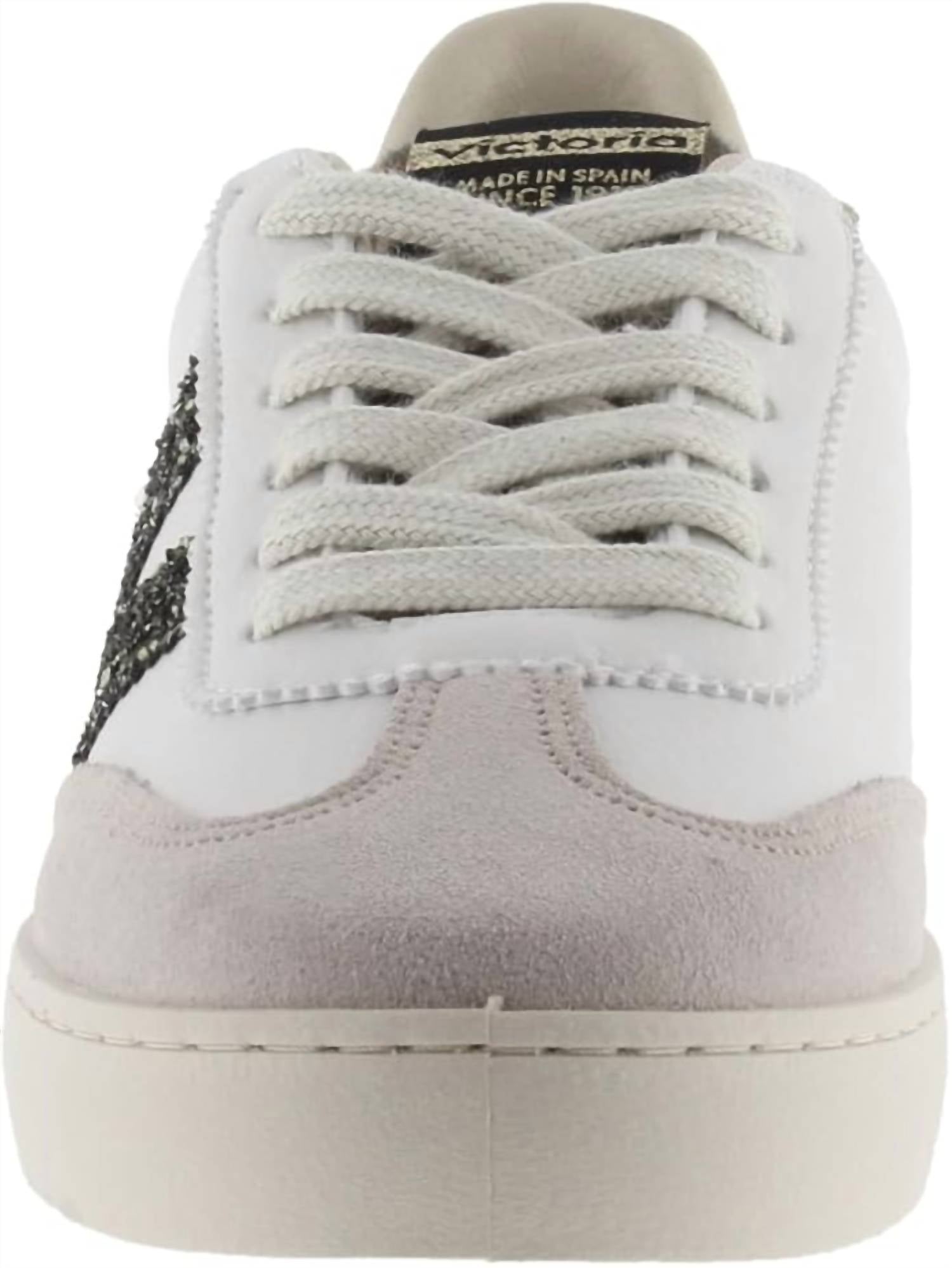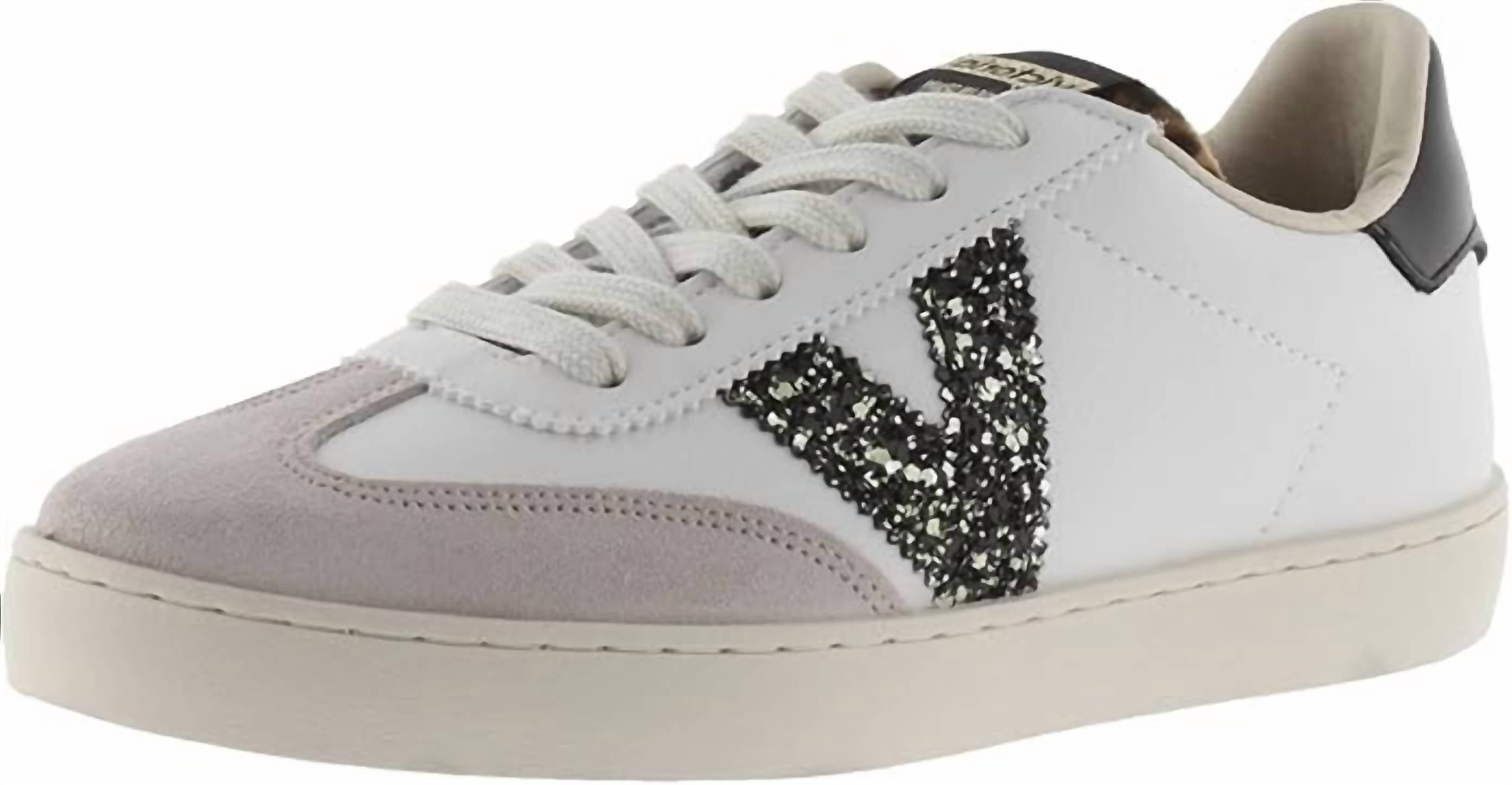 Elevate your athleisure style with the Women's Low-top Trainers Sneakers by VICTORIA. These sneakers, designed in a chic Hielo color, feature a cracked-effect faux leather and glitter for a unique texture. Crafted in Spain, they boast a round toe shape with a flat heel design for ultimate comfort, with a low heel height of 1 1/4"-2". The sustainable lightly toasted sole is made from vegetable oils, equipped with an ergonomic insole from recycled materials for an optimal fit. Perfect for fitness or workout occasions, these sneakers are your go-to choice for the spring season.