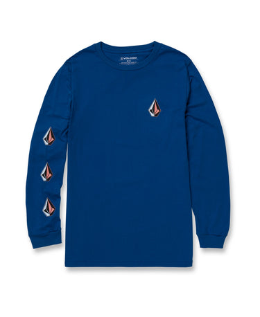 Volcom Men's Iconic Stone Long Sleeve T-shirt Blue Size Large