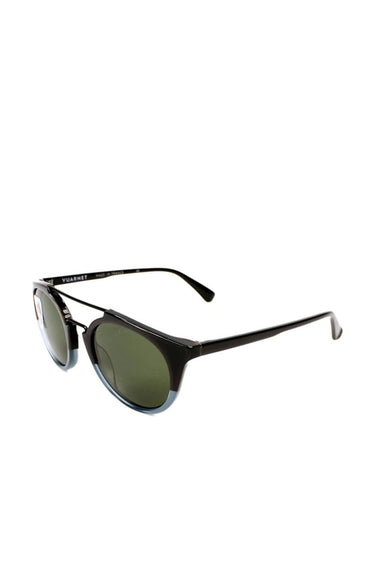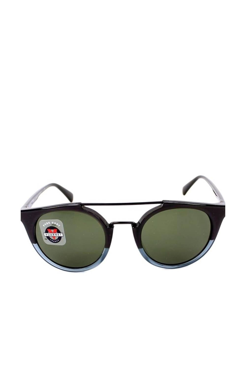 Rounded sunglasses. French mineral glass lens blocks harmful UV rays. Acetate frame with metal double-bridge nose. 5-barrel hinges for robust durability.