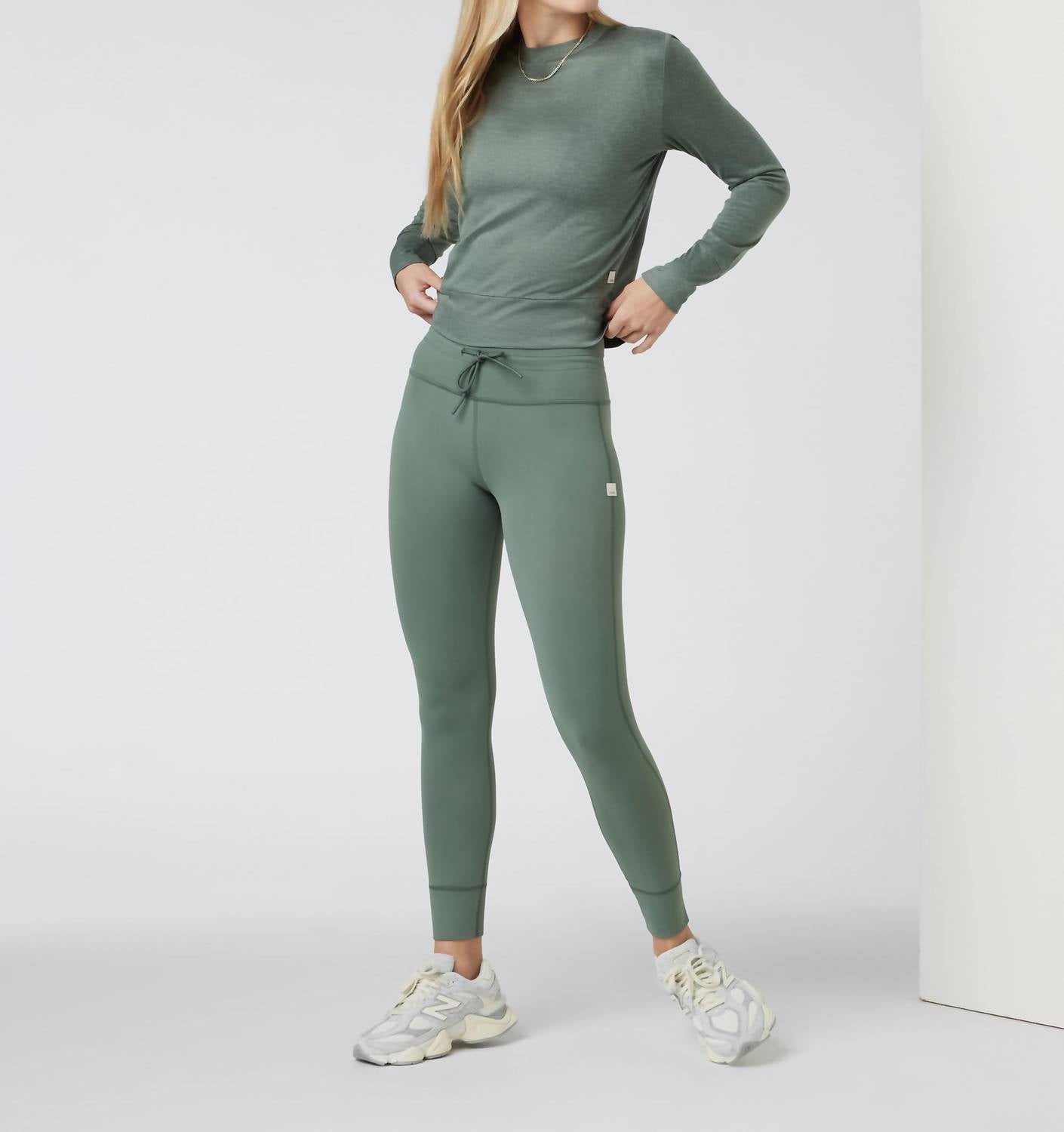 Discover the Vuori Daily Legging in Opal, a standout addition to your athleisure wardrobe. These leggings are crafted from 72% Polyester and 28% Elastane, featuring the peachy BreatheInterlock™ fabric with a high-rise waist for a no-slip fit. Designed with a 24.5" 7/8 inseam, they offer unmatched comfort and style with cuffed ankles and a pull-on closure. Care for these solid-colored leggings is simple with machine wash and tumble dry instructions, perfect for everyday fitness and workout occasions.