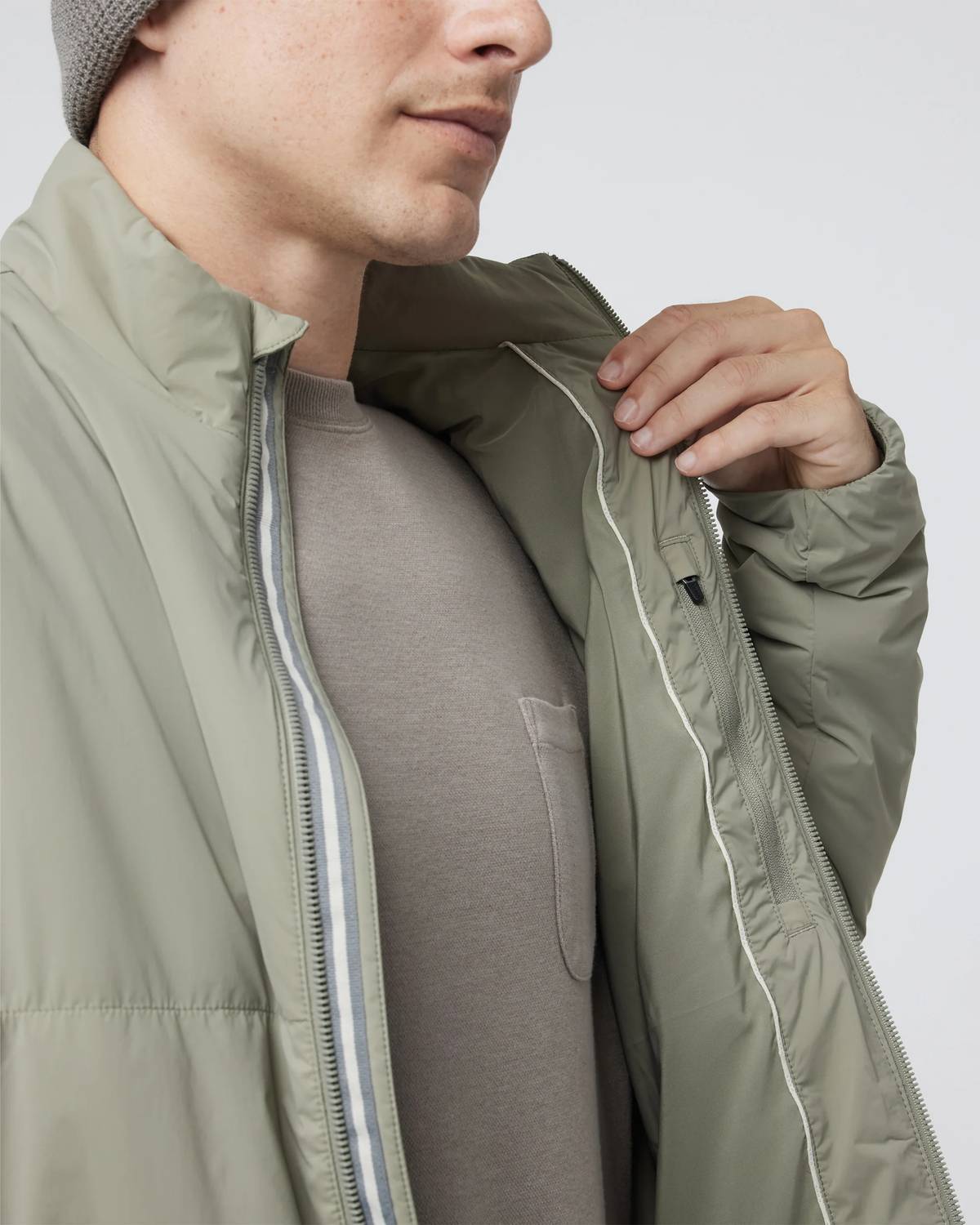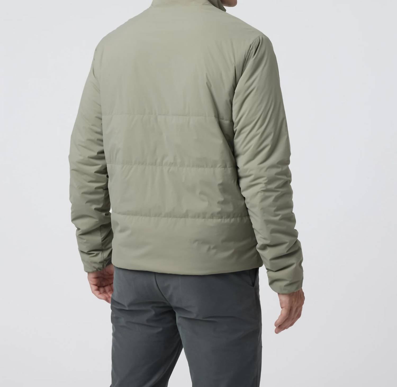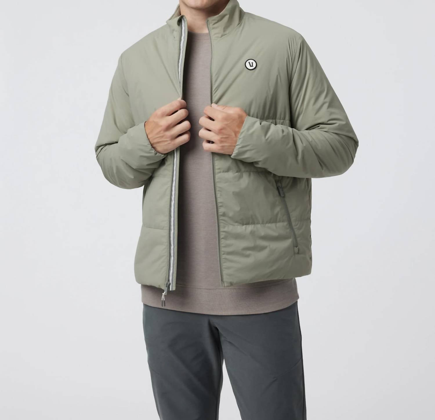 Introducing the Vuori Echo Insulated Jacket 2.0 in a sophisticated Metal hue, perfect for your winter adventures. This men's performance jacket features long sleeves and a sleek zip closure for a modern look while ensuring essential warmth with Primaloft™ Synthetic Insulation. Made from 85% recycled polyamide and 15% elastane, this ultra-soft and lightweight jacket is water-resistant, offering practicality with a hidden pocket. Care for it easily by machine washing and tumble drying, making it an ideal choice for both style and functionality in cold weather.