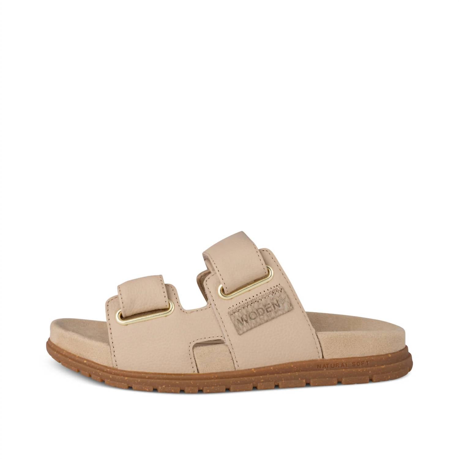 This sandal will take you from brunch to dinner and everything in between. Introducing the Women's Lisa Leather Sandal by Woden in a chic Coffee Cream color, a minimalist piece perfect for summer vacations. Crafted from LWG-certified leather, this sandal features a round toe design with a flat heel for effortless comfort. It boasts two chunky, adjustable buckle straps ensuring a secure fit, complemented by a lightweight PU midsole and an anatomical footbed for superior comfort. Finished with a rubber outsole containing 10% recycled rubber, this sandal combines sustainability with style.