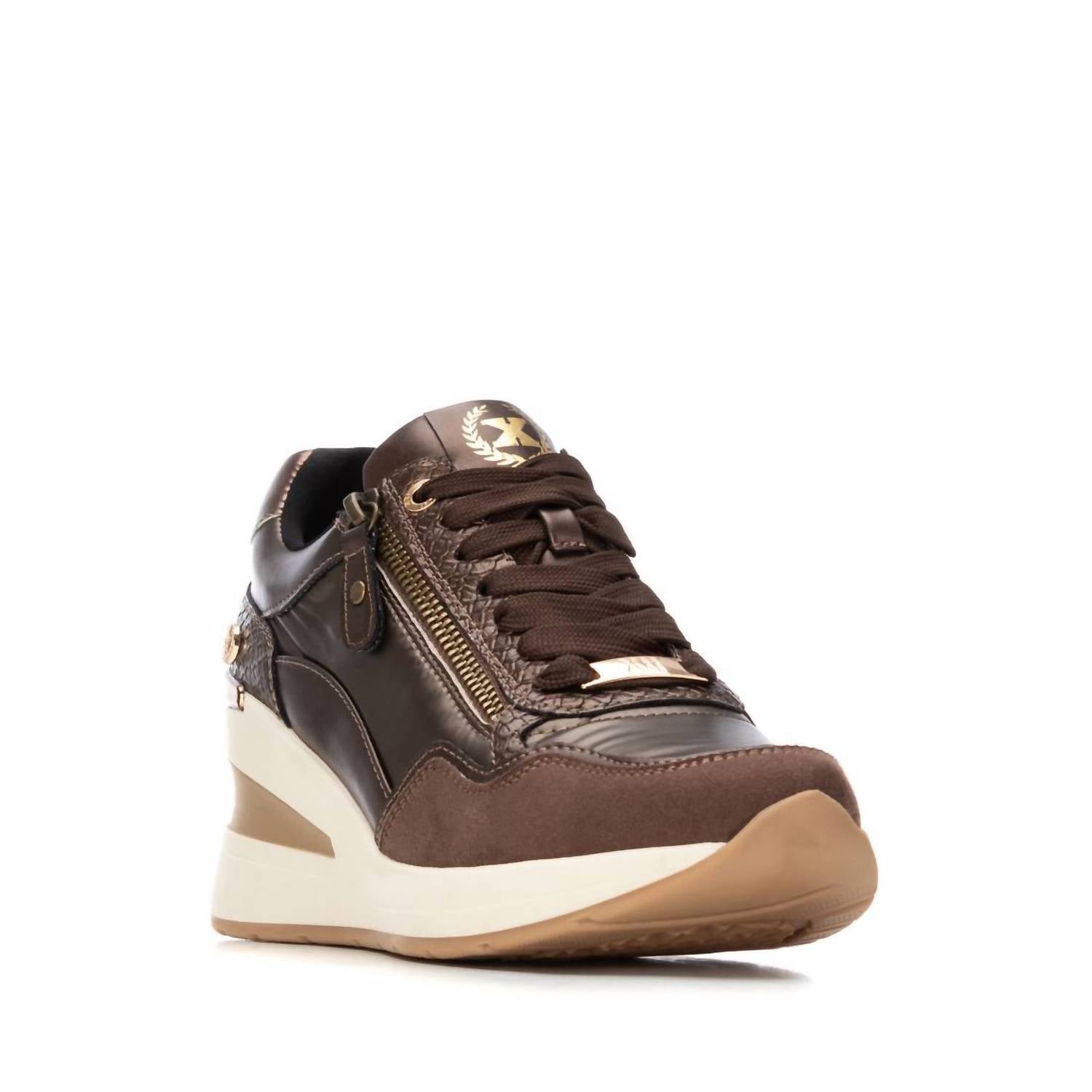 Elevate your athleisure wardrobe with the Women’s Round Toe 144382 Sneakers by Xti, presented in a striking bronze hue. Crafted from premium leather, these sneakers boast a medium shoe width and a stylish round toe shape, ensuring both fashion and comfort. The flat heel design makes them ideal for fitness, workouts, and casual outings throughout the spring season. Step confidently with these expertly crafted sneakers that bring a winning combination of style and comfort.