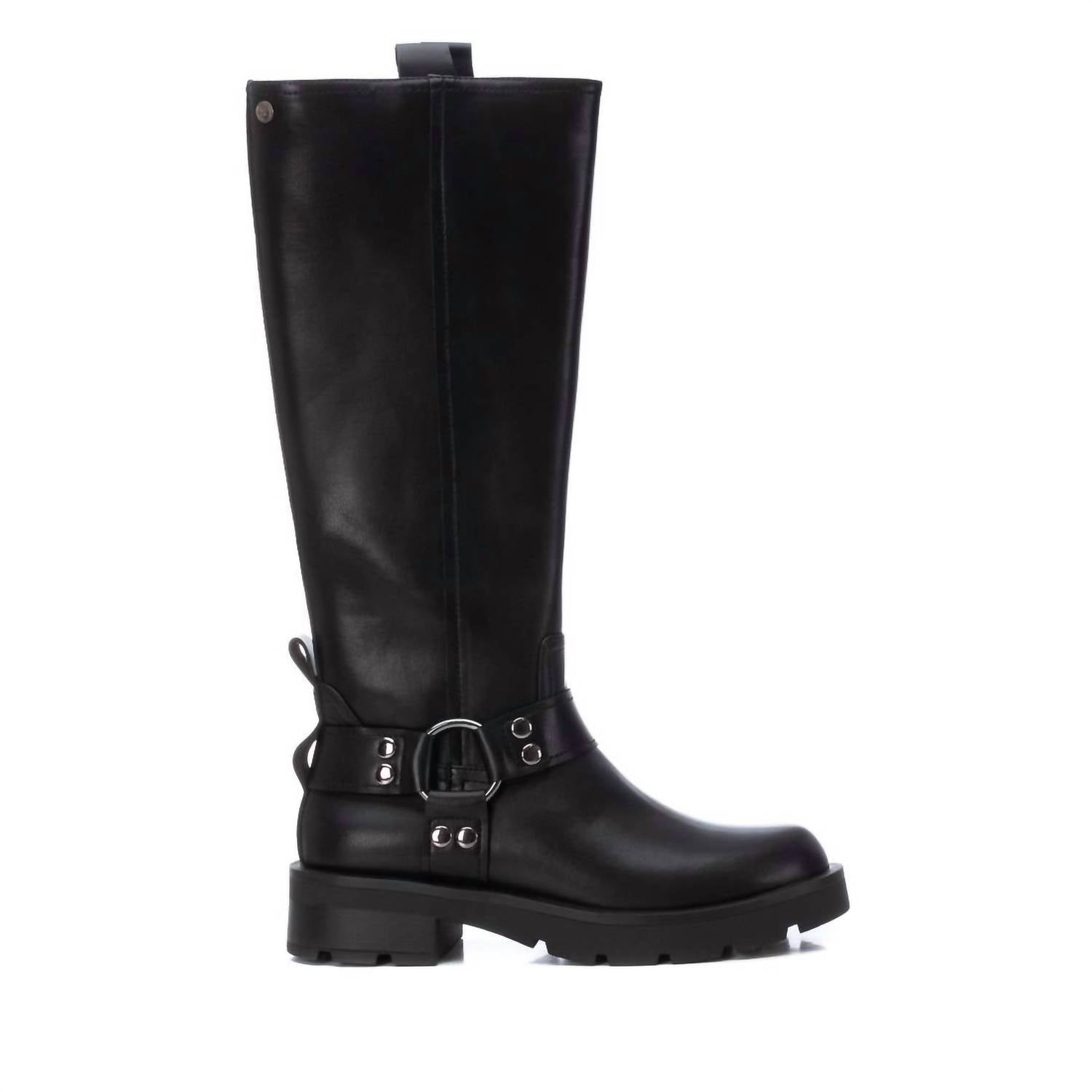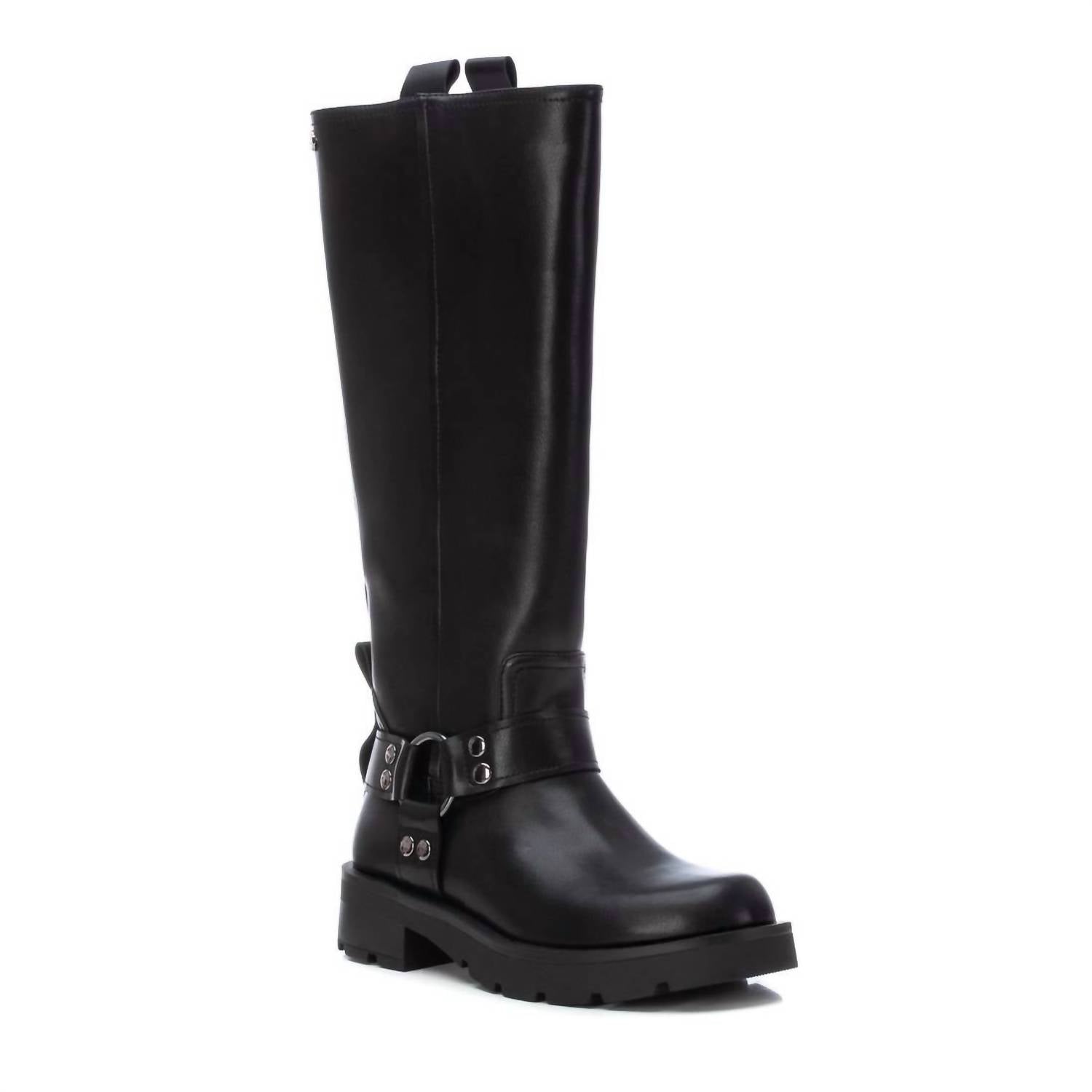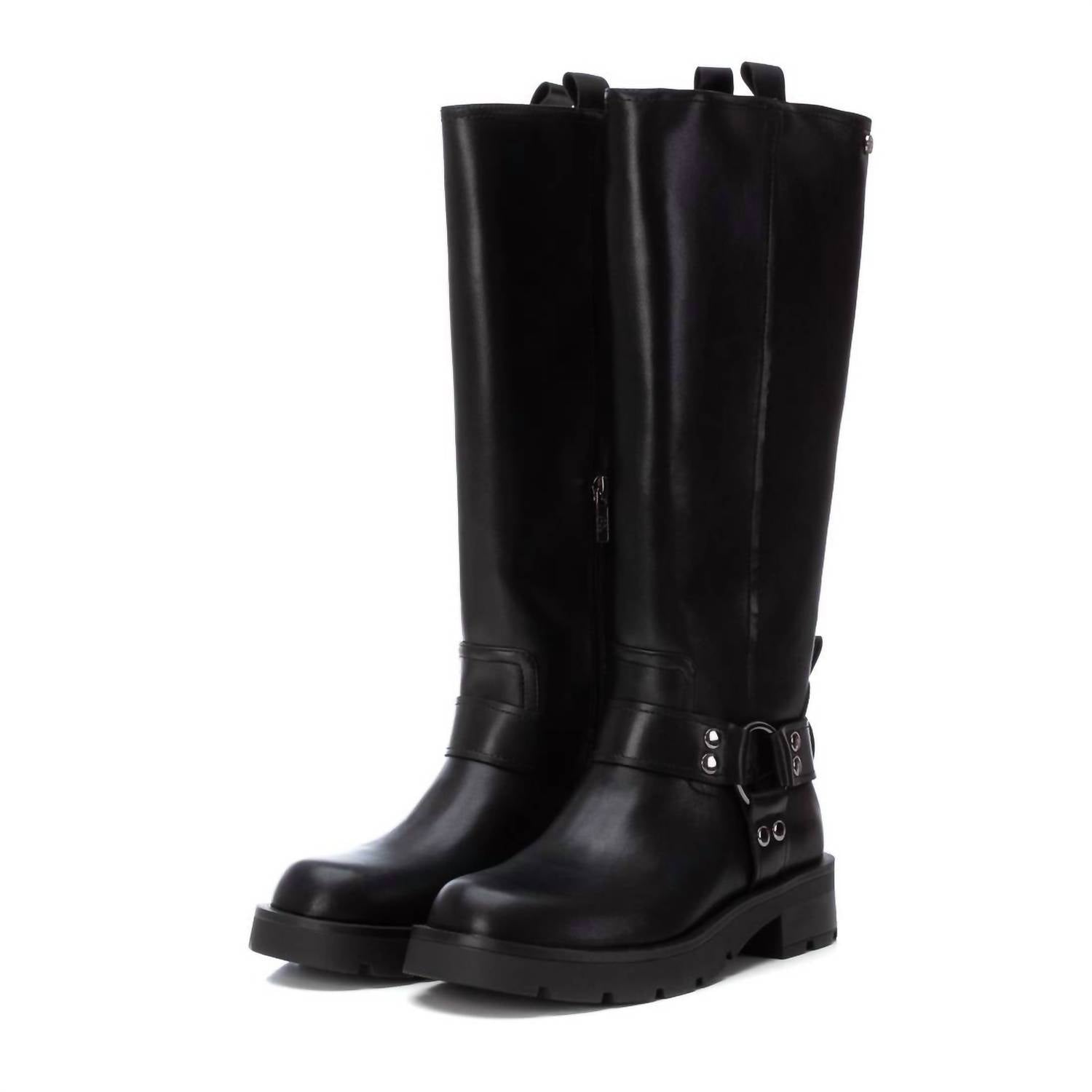 This Women’s Biker Boots is crafted from breathable faux leather with decorative buckles and metallic details. It features a 1.57-inch block heel, side zipper closure, padded insole, and a non-slip rubber sole for comfort and durability.
