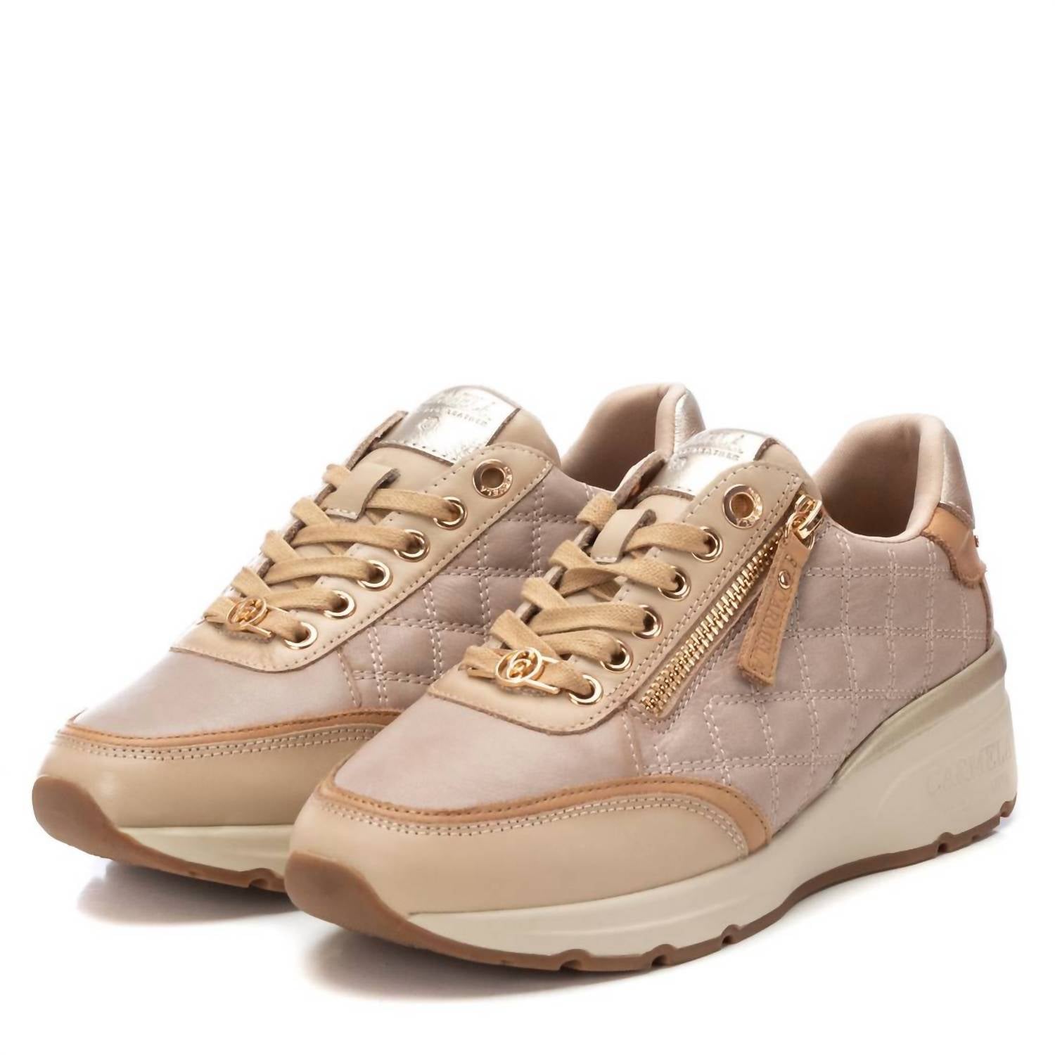 Elevate your style with the Women's Leather Trainer Sneakers from Xti, designed for modern women seeking both elegance and comfort. These trainers showcase high-quality leather material with a sporty 4 cm wedge heel, equivalent to 1.57 inches, offering a chic boost to your winter wardrobe. The round toe and decorative padding enhance both style and fit, while the side zip closure and adjustable laces ensure ease of wear. Additionally, the non-slip sole and removable insole provide versatility and practicality for all-day comfort.