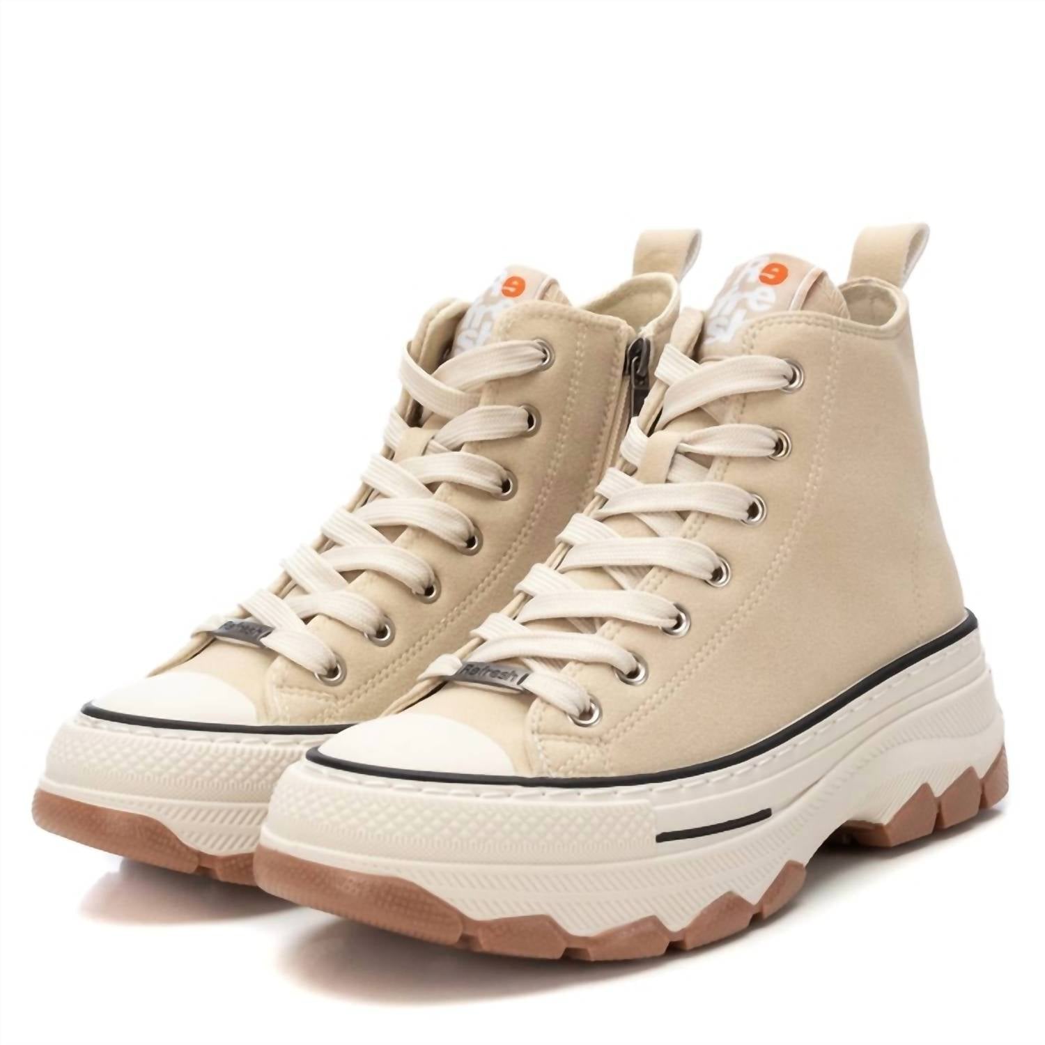 Get your daily steps in with these adorable sneakers.This Sneaker Bootie is crafted from faux leather, offering a blend of urban style and comfort with a 1.18-inch sole. It features a side zipper, adjustable laces, and a non-slip serrated rubber sole for stability. Certified vegan by PETA, this versatile bootie ensures customizable comfort with a removable insole.