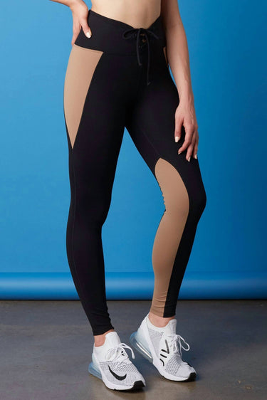 Elevate your workout gear with the YEAR OF OURS Two-tone Football Legging in Black/Doe, an athleisure must-have for spring. These women's leggings feature a chic color block design on the calf and thigh, with a flattering mid-rise and skinny leg silhouette. Crafted in the USA from an 80% Nylon, 20% Spandex blend, these activewear leggings ensure a sleek fit. Closure: Pull on. Care: Machine wash cold, lay flat to dry. Model wears size Small. Perfect for fitness or workout sessions.